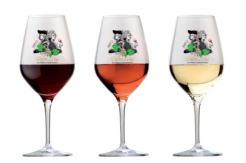 Chaque année, Les Vinées Tonnerroises éditent un verre sérigraphié exclusif pour vous permettre de déguster les vins du salon (avec modération).