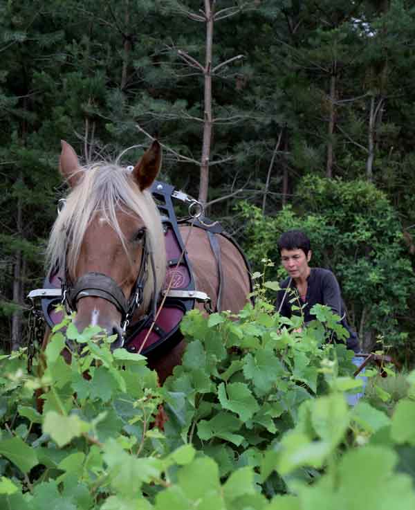 Les parcelles situées à moins de 2 km de la cuverie, exposées Sud et Sud-Est, ont été plantées entre 1993 et 2023. Elles sont toutes entourées de forêts, de haies ou de prairies dans le but de conserver la biodiversité de chacune. Pour aller encore plus loin et observer le comportement du sol et de la vigne, un hectare est travaillé en en traction animale.